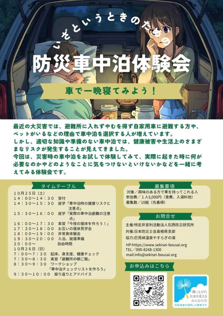 15:30~16:00 座学「実際の車中泊避難の注意点」